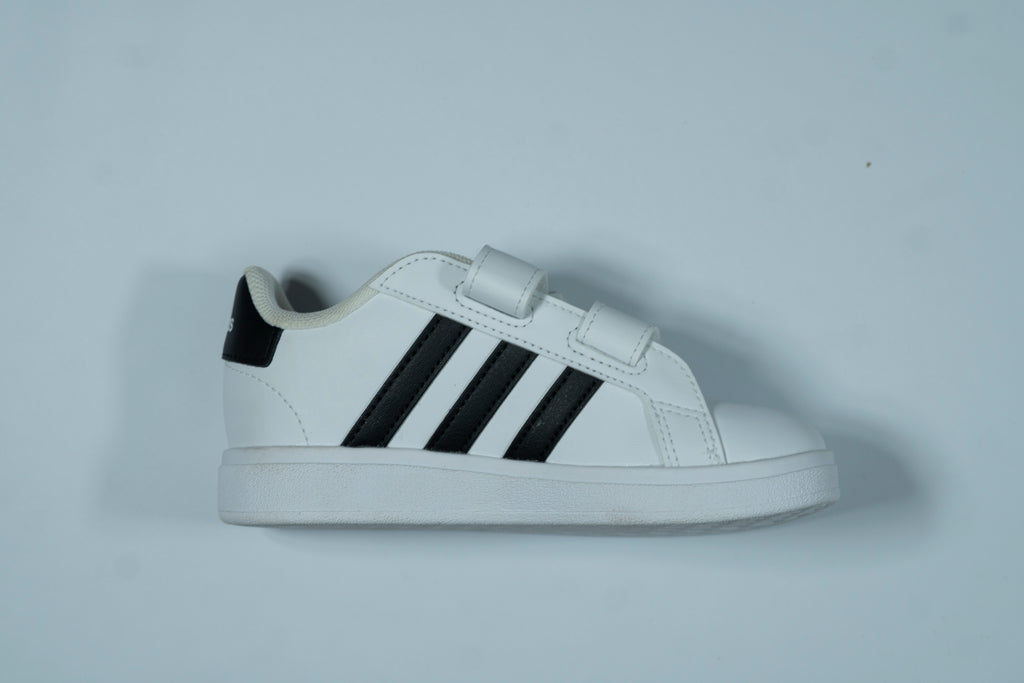 Give your little one the perfect blend of comfort and style with the Adidas Kids’ White Sneakers, designed for all-day wear and easy fit. Featuring the iconic three black stripes, these sneakers bring classic Adidas style to your child’s wardrobe.