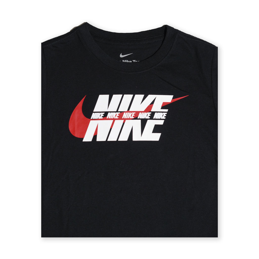 Step out in sporty style with this Nike Boys Graphic T-Shirt featuring the iconic red Swoosh logo and bold “NIKE” text across the chest. The black cotton fabric provides a soft, breathable feel for all-day comfort, whether it’s playtime or casual outings.