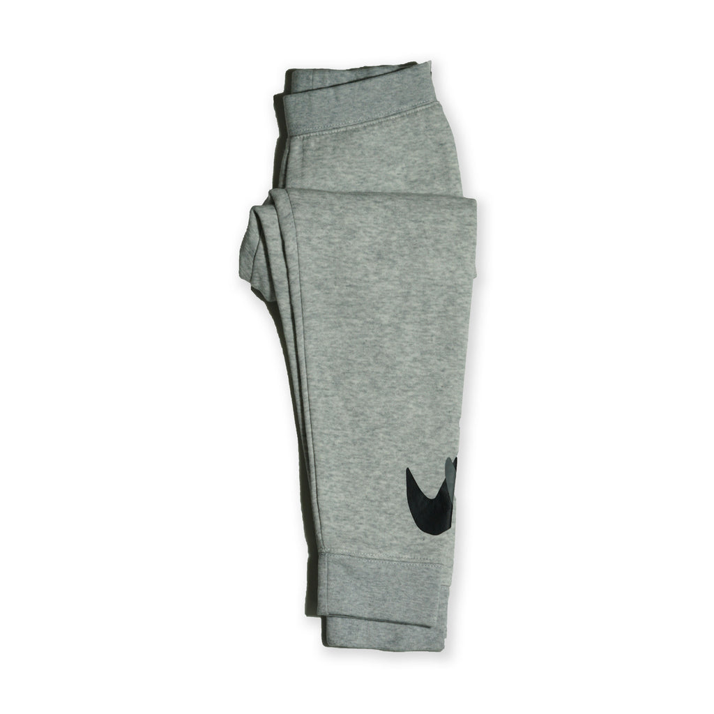 Iconic black Nike Swoosh on lower leg