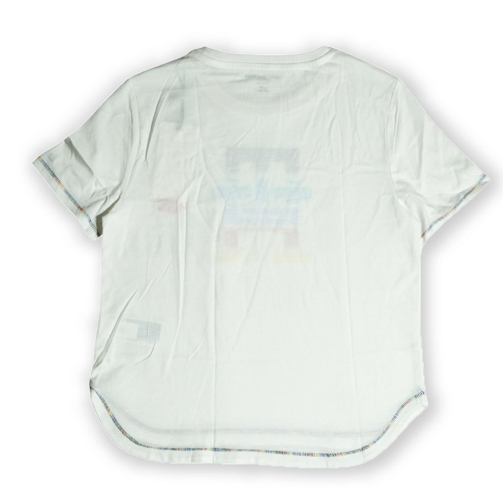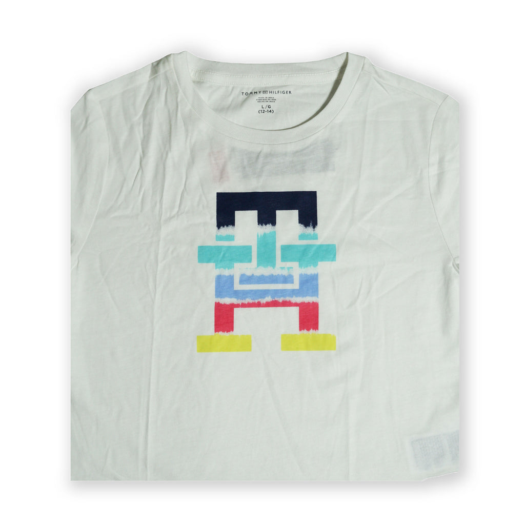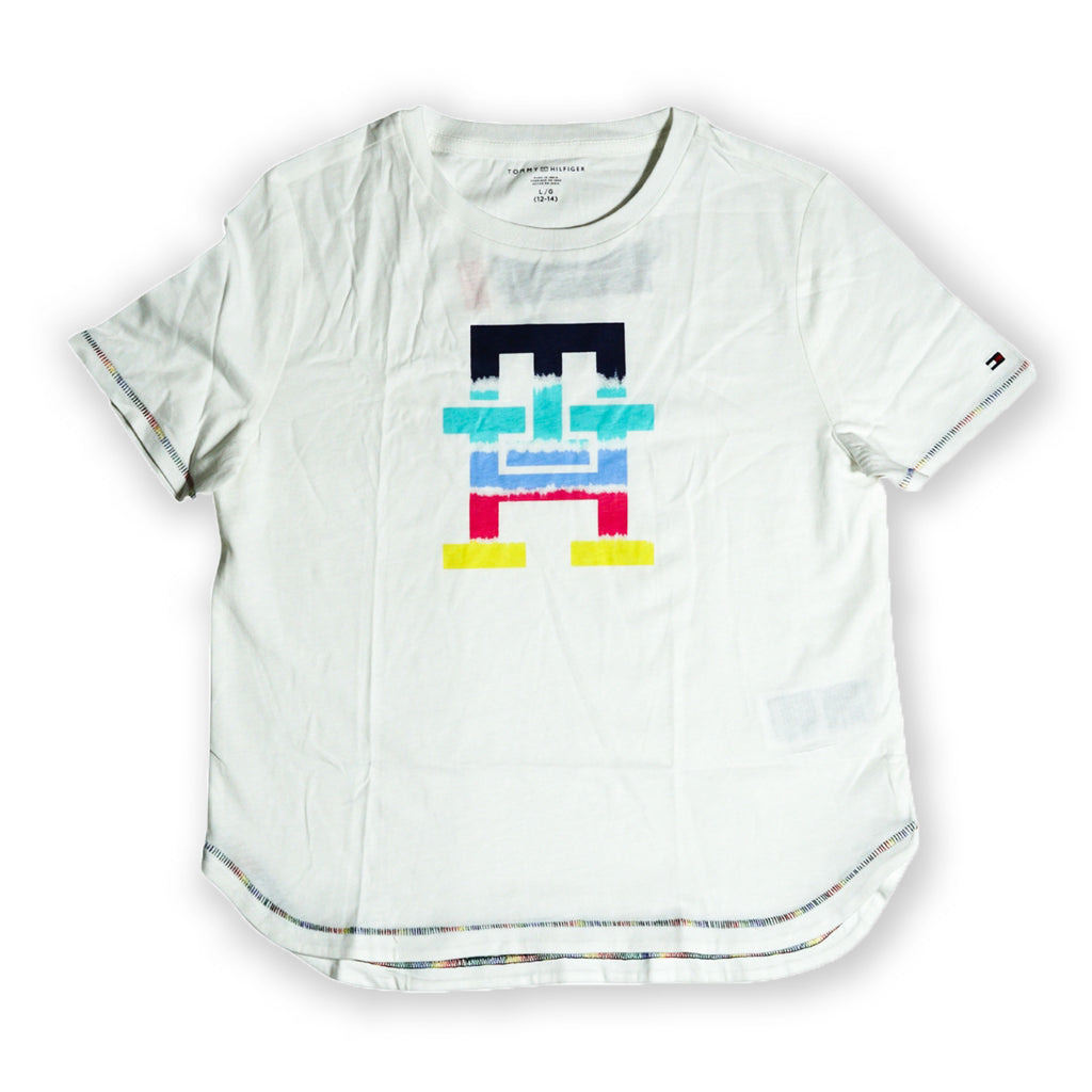 Add a pop of color to your casual look with this vibrant multi-logo tee from Tommy Hilfiger. Designed with a bold stacked “TH” graphic in eye-catching colors, this premium cotton T-shirt offers a fresh twist on classic Hilfiger style. The soft white base pairs perfectly with colorful stitching details around the sleeves and hem, giving it a unique, elevated finish. Ideal for daily wear, this tee combines comfort, creativity, and unmistakable Tommy heritage.
